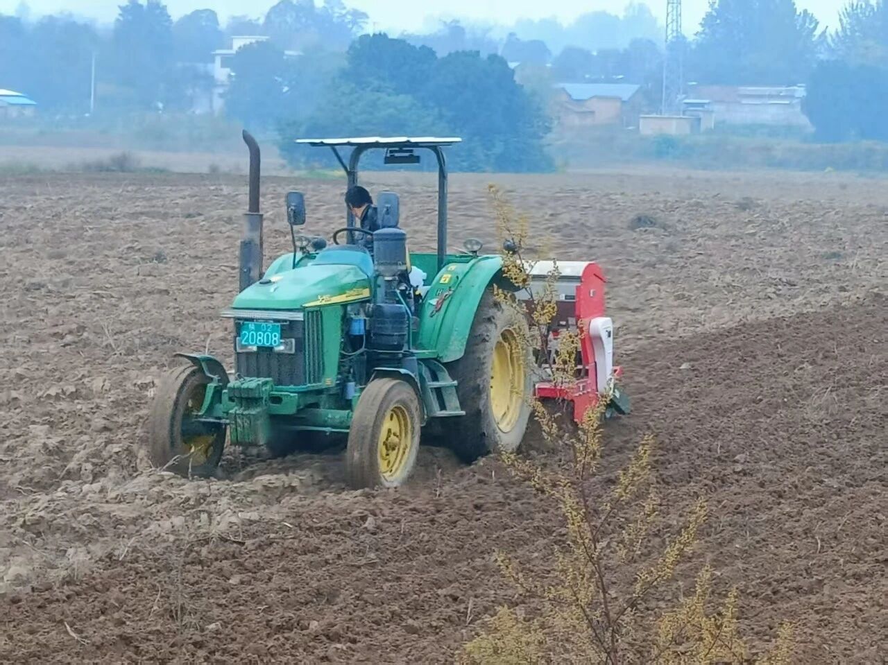 在百公里外的銅川市耀州區(qū)小丘鎮(zhèn)中原村,亞澳農(nóng)機(jī)同樣成為搶種主力。“播種期推遲了近十天,土壤又濕,最怕播深不均和倒伏。”農(nóng)機(jī)手操控著亞澳寬幅溝播機(jī)穿梭田間,機(jī)具搭載的指夾式排種器實(shí)現(xiàn)精準(zhǔn)下種,配合可調(diào)節(jié)播深系統(tǒng),將播種深度嚴(yán)格控制在2—4cm的最佳范圍,既滿足銅川市農(nóng)機(jī)推廣站副站長(zhǎng)姚關(guān)盈提出的“淺播搶積溫”要求,又通過(guò)均勻播種避免了“播量過(guò)大易倒伏”的風(fēng)險(xiǎn)。截至目前,銅川市已調(diào)度1600余臺(tái)套農(nóng)機(jī)投入秋播,亞澳機(jī)具憑借“旋耕、播種、施肥一體化”優(yōu)勢(shì),大幅提升了濕墑地塊的作業(yè)效率,助力農(nóng)戶把延誤的農(nóng)時(shí)搶回來(lái)。